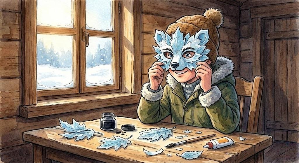 He crafted a soft, gentle mask shaped like an ice bear’s face.