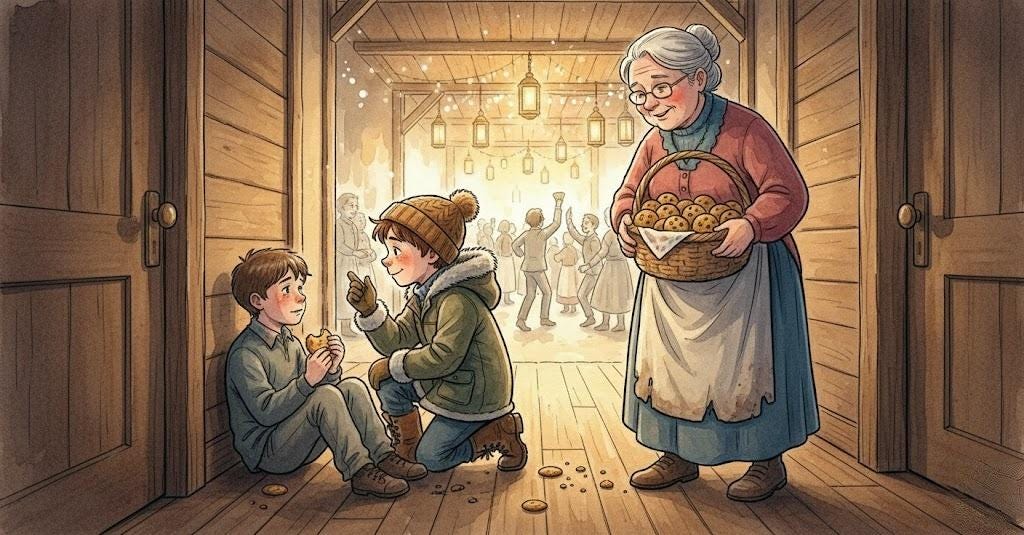 He looked at the young boy beside him, holding his cookie with a smile that hadn’t been there before.