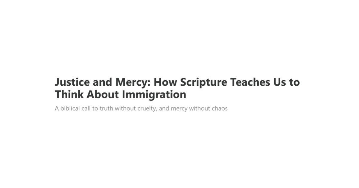 This is especially important when thinking about immigration. Scripture does not permit us to choose mercy instead of order, or order instead of mercy. It requires careful judgment—judgment that considers harm, protects the vulnerable, restrains wrongdoing, and remains accountable to God.