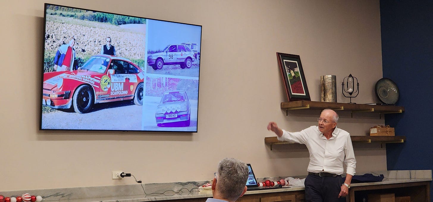 That’s how I ended up sitting beside my dad — who has loved cars his whole life — listening to a man named Ken Davies quietly unfold decades of racing, risk, friendship, and joy.