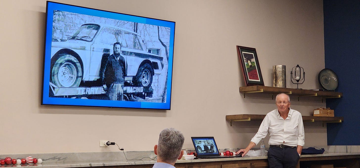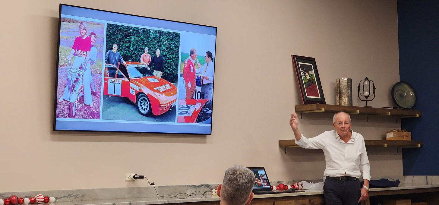 He invited me to come hear him speak at a Porsche Club event about his racing career.